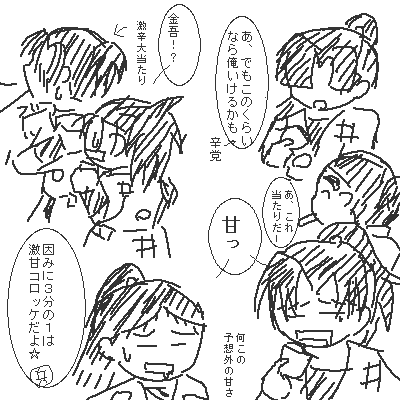 激甘コロッケだったが甘いの好きなのですぐに慣れた→しんべヱ、喜三太。